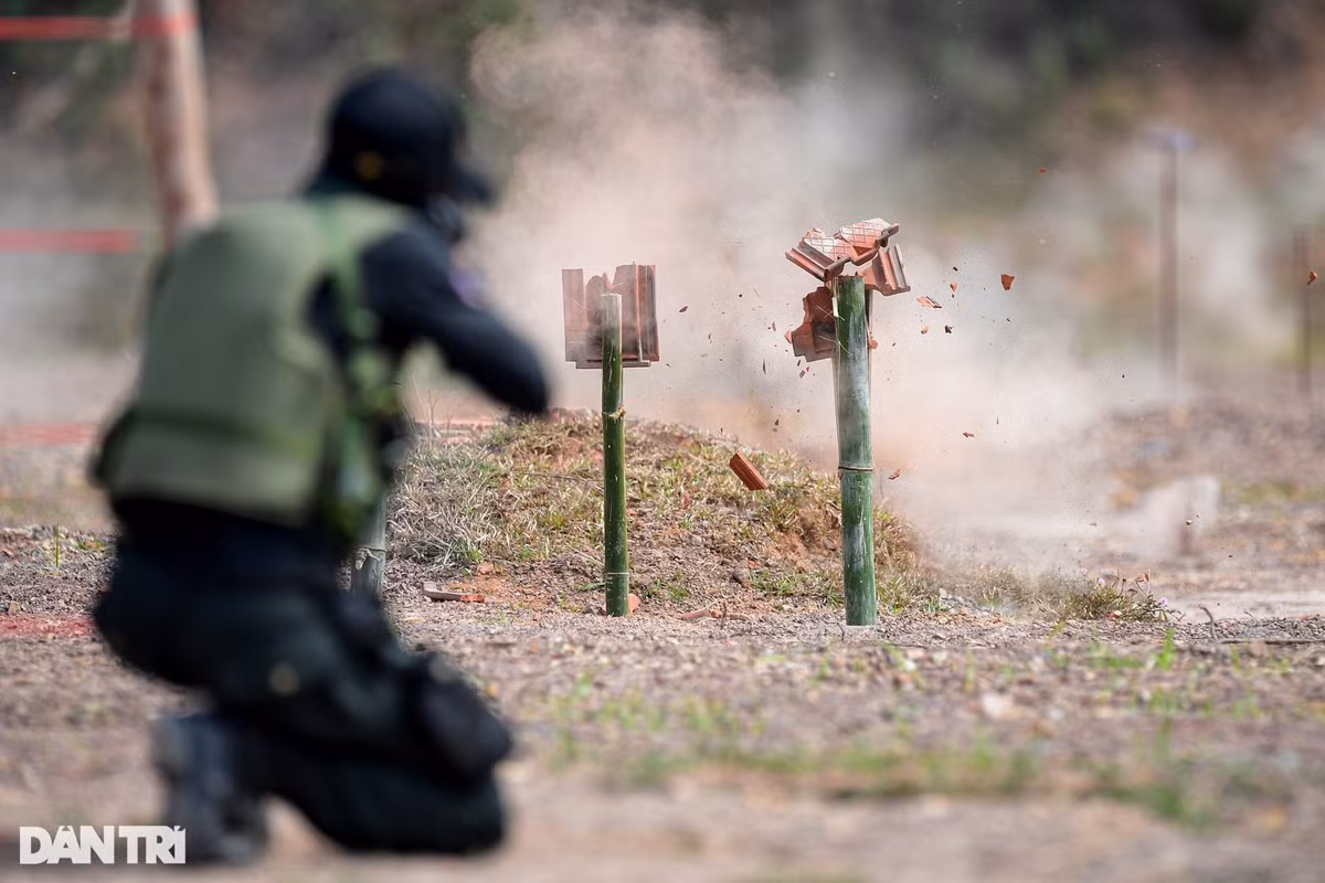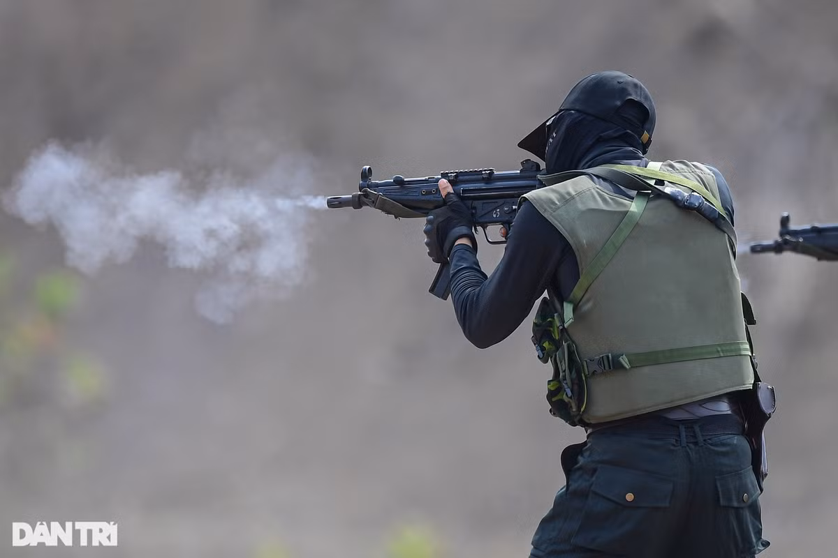 Các lực lượng hiệp đồng tác chiến nhịp nhàng, có bố trí súng bắn tỉa từ xa để yểm trợ cho lực lượng tiếp cận xông lên tấn công nhóm khủng bố.