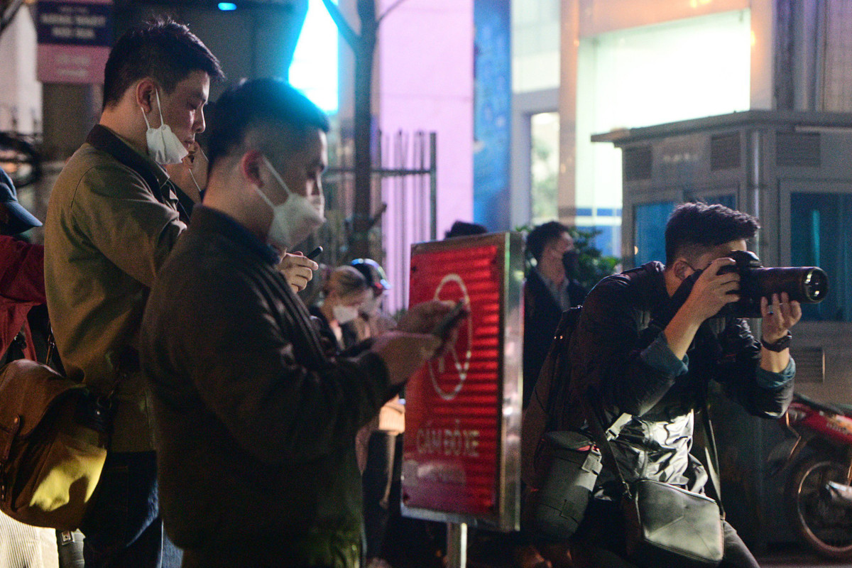 Nhiều phóng viên các cơ quan báo chí và người dân tập trung bên ngoài tòa nhà Bamboo Airways để theo dõi sự việc. Ảnh: Thạch Thảo.