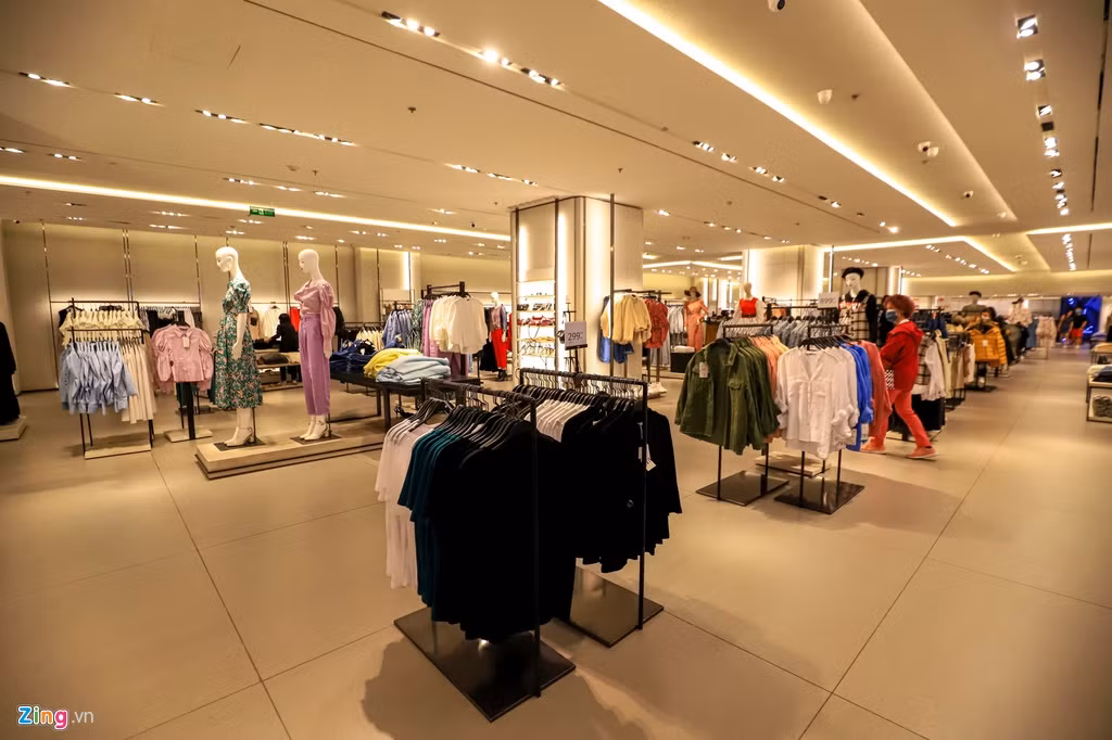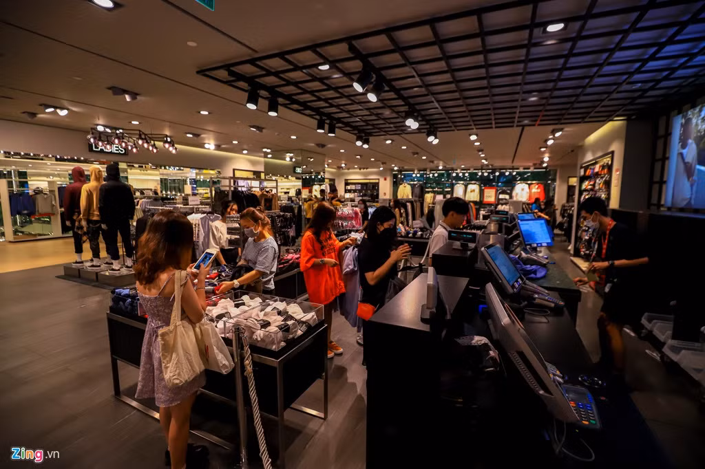 Khác hẳn với khung cảnh chen chúc, xếp hàng để mua sắm và thanh toán vào các buổi tối thường nhật, những cửa hiệu thời trang nổi tiếng H&M, Zara, Uniqlo, Pull&Bear chỉ còn vài bạn trẻ bịt khẩu trang đến xem hàng.