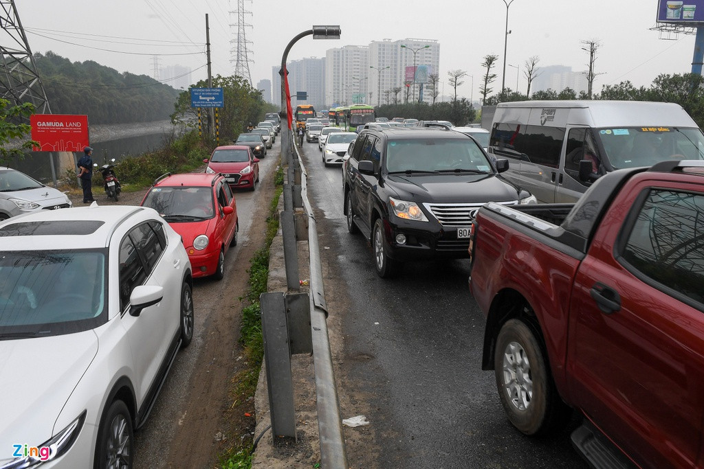 Chiều 16/2 (mùng 5 Tết), cao tốc Pháp Vân - Cầu Giẽ đoạn gần vành đai 3 ùn tắc khoảng 2 km.
