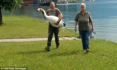 | Thiên nga trắng tấn công người trên sông Barrow ở Athy, Kildare thuộc Ireland |