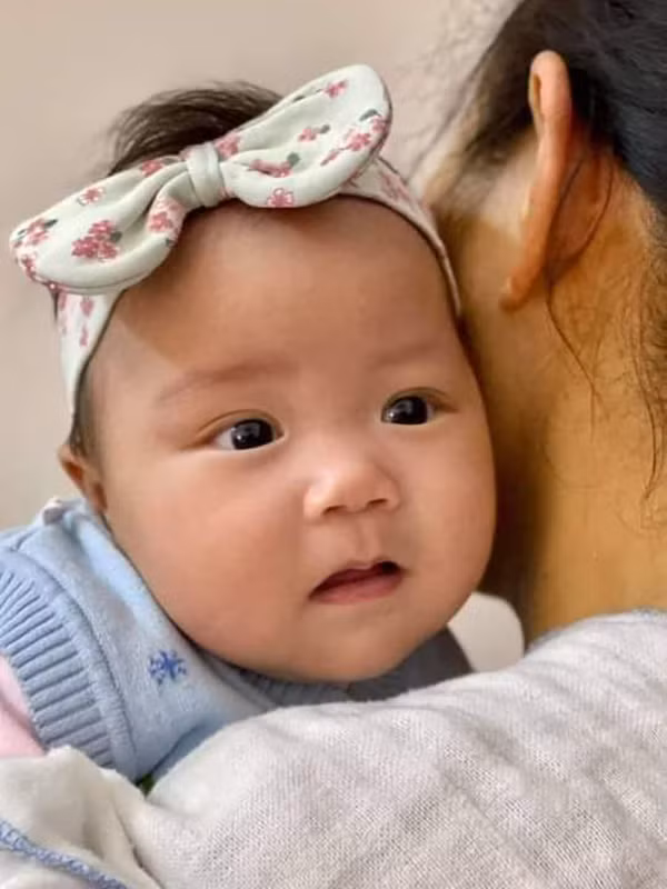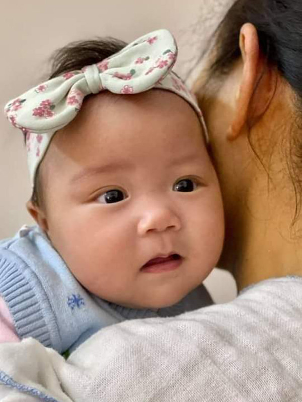 Em Đu Đủ nhỏ, điệu đà với những chiếc nơ. Đặc biệt Thảo Bebe chia sẻ, cô có mua rất nhiều quần áo màu hồng cho bé để thêm phần nữ tính.