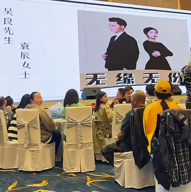 Tại buổi lễ, màn hình lớn chiếu dòng chữ "lễ ly hôn" và bức ảnh chụp chung của hai người. Nhưng cặp vợ chồng trong bức ảnh không mặt đối mặt mà nhìn ngược hướng, báo hiệu sắp đường ai nấy đi. Dưới bức ảnh có dòng chữ "không duyên không phận”.