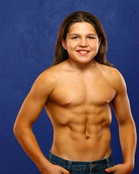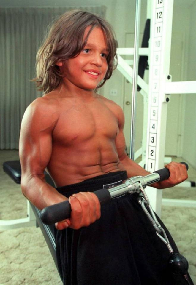 Để có được thân hình vạm vỡ ngay từ lứa tuổi tiểu học, Sandrak đã trải qua tuổi thơ không bình thường như bao đứa trẻ. Năm 1994, gia đình anh chuyển từ Ukraine đến bang Pennsylvania, Mỹ sinh sống. Tại đây, bố Sandrak - nhà võ thuật từng vô địch thế giới - và mẹ - VĐV aerobic - sớm huấn luyện con trai tập thể hình từ khi mới 2 tuổi. Lên 6 tuổi, Sandrak đã sở hữu cơ thể rắn chắc, được xem là phiên bản nhí của VĐV thể hình, ngôi sao điện ảnh Arnold Schwarzenegger. Ảnh: Inside Edition.