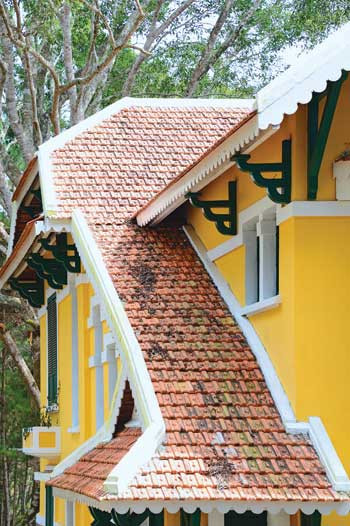 Nếp mái sử dụng ngói Tây với mặt bằng bẻ góc phức tạp là một nét thường gặp trong kiến trúc biệt thự cổ Đà Lạt.