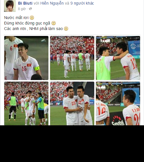 Ngoài những lời xin lỗi của các cầu thủ làm nhiệm vụ ở SEA Games, thì trên mạng xã hội Facebook. Những đàn anh ở nhà như cầu thủ Sỹ Mạnh cũng bày tỏ những dòng cảm xúc tỏ ra tiếc nuối cho các đàn em đang làm nhiệm vụ tại Singapore.