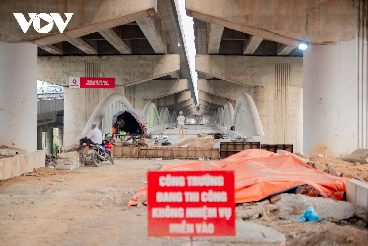 Công trình cầu vòm sắt vượt hồ Linh Đàm dự kiến hoàn thành trước 31/12/2021 nhưng đến nay nhiều hạng mục vẫn còn dang dở, thi công ì ạch, chưa biết bao giờ mới hoàn thành.