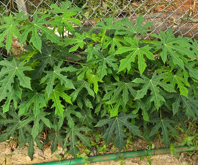 Theo tìm hiểu, rau mì chính còn có tên gọi khác là Bina Chaya, đu đu Nhật, mới du nhập vào Việt Nam vài năm nay. Cây cao từ 2-3m, lá xẻ thùy giống lá đu đủ nhưng kích thước nhỏ hơn, thân giòn dễ gãy, đặc biệt là phần ngọn. Nếu nhìn qua, cây mì chính khá giống cây đu đủ, thân có nhiều vết nứt nẻ.