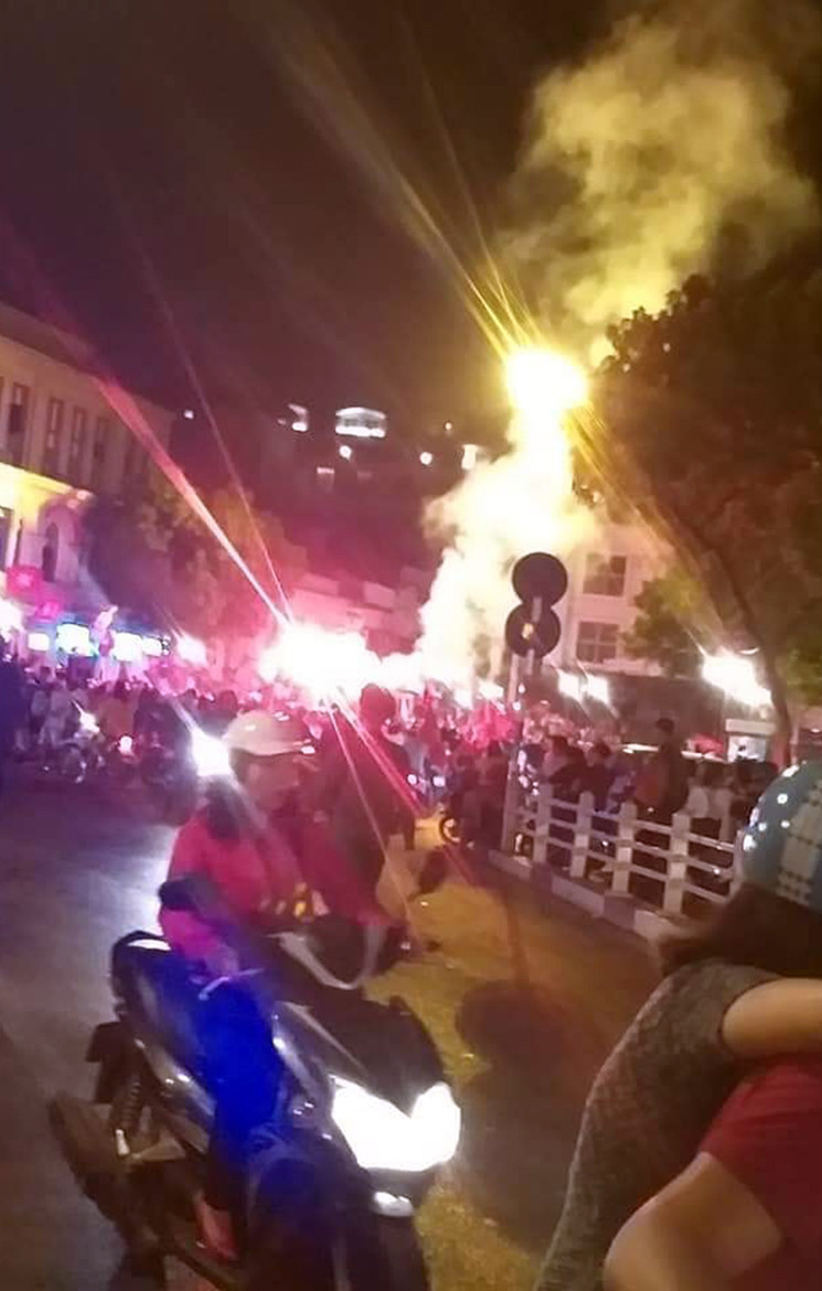 Tuy nhiên vẫn còn có nhiều cổ động viên ăn mừng chiến thắng quá khích đem theo pháo sáng đốt ở dọc đường.