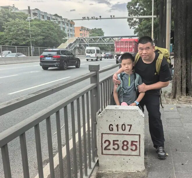 Ngày 11/7, ba bố con chính thức khởi hành. Ngày đầu tiên, họ đi bộ hơn 20km đến Đại Lĩnh Sơn, Đông Hoản. Vì có việc công ty khẩn cấp, họ phải quay lại Thâm Quyến ngay ngày hôm sau. Tối ngày 17/7, họ lại tiếp tục hành trình đặc biệt.