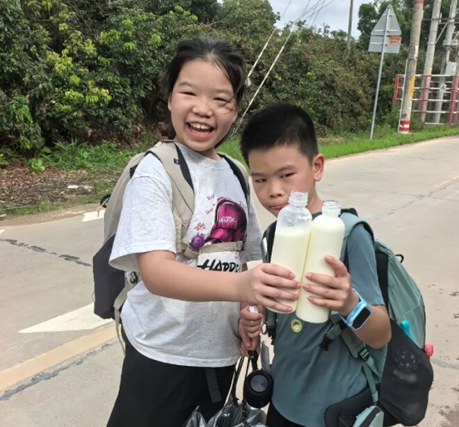 Trong suốt hành trình, hai đứa trẻ cũng nhận được rất nhiều bài học. Người chị hào hứng kể rằng đây là lần đầu tiên em được tận mắt nhìn thấy cầu vồng đôi, một hình ảnh khó quên. Hai chị em cũng dùng đồng hồ điện thoại để ghi lại cảnh đẹp trên đường.