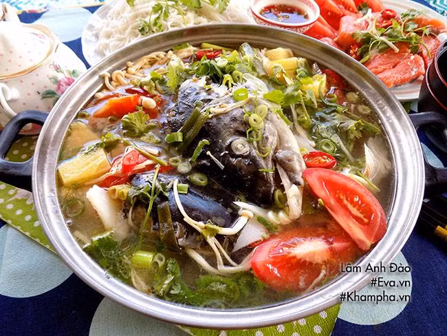 Anh thay nguyên liệu thịt heo bằng cá hồi cùng các loại củ, quả trộn nước cốt thảo mộc cam thảo. Nhờ đó món ăn có thể giảm cảm giác ngán khi ăn nhiều mà lại giúp giữ dáng, đẹp da và chống viêm họng, cảm lạnh.