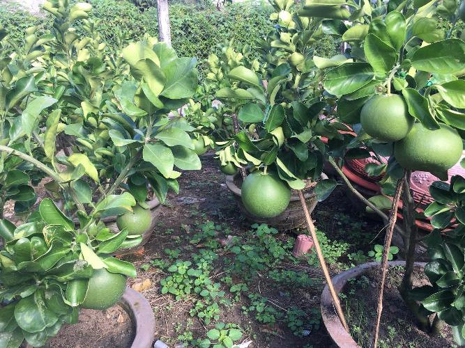 Dạo quanh vườn, ông Hiệp nói, toàn bộ chậu bưởi đang phát triển tốt, gia đình đã tạo thế xoay tròn nhiều nhánh, mỗi chậu có từ 5- 8 quả, thậm chí có những chậu mang 9 quả căng tròn đều, màu xanh mát mắt. Đây là điều kiện lý tưởng để người dân chọn lựa những chậu bưởi vừa ý để chơi Tết. Dự kiến hơn 1,5 tháng nữa ông sẽ xuất bán các chậu bưởi trên với giá dao động tại vườn từ 1,5 – 2 triệu đồng/chậu.