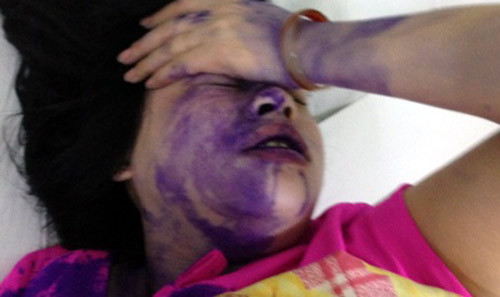| Chị Hằng đang điều trị tại bệnh viện. |