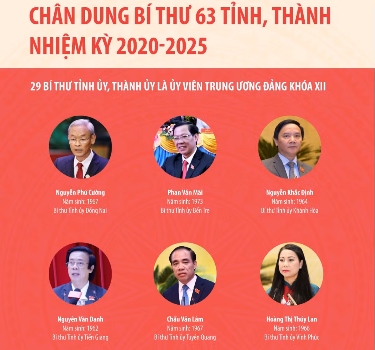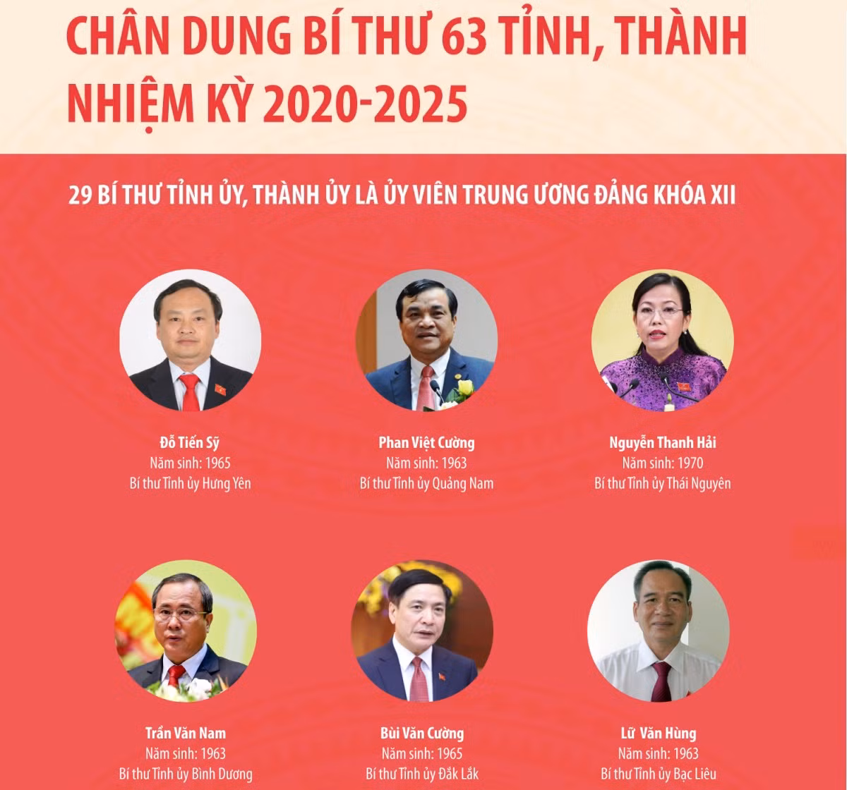 Chân dung Bí thư 63 tỉnh, thành nhiệm kỳ 2020-2025