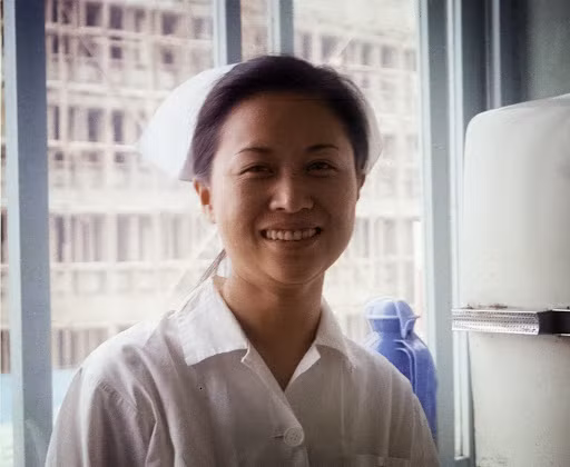 Nụ cười duyên của một nữ y tá, một hình ảnh nổi bật trong loạt chân dung phụ nữ Sài Gòn năm 1972. Ảnh: Brian Delk Flickr.