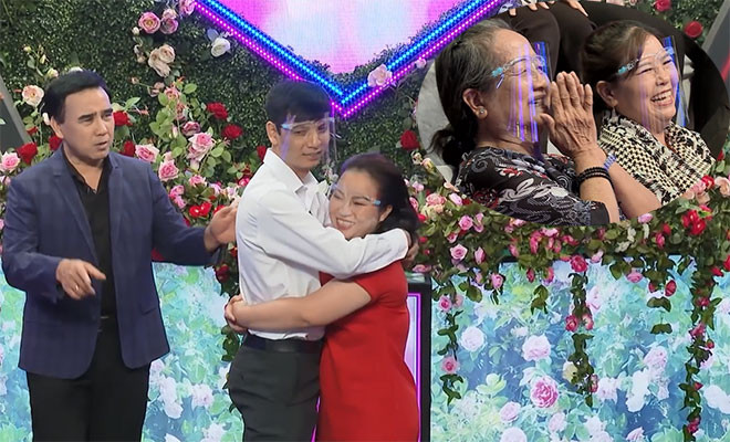 Sau khi nắm tay tỏ tình, đàng trai ôm đàng gái trao cảm xúc khiến cả trường quay cổ vũ nhiệt tình.