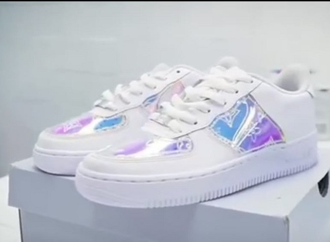 Đôi giày thể thao sau khi "độ" bằng túi LV.