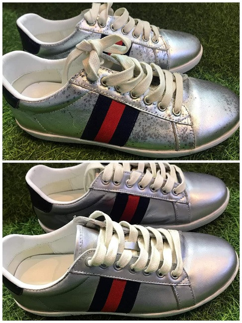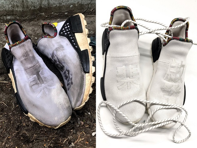 Những đôi giày thể thao cũ, bẩn, ố đen... qua bàn tay "phù thủy" của Dương đều trở lại như mới.