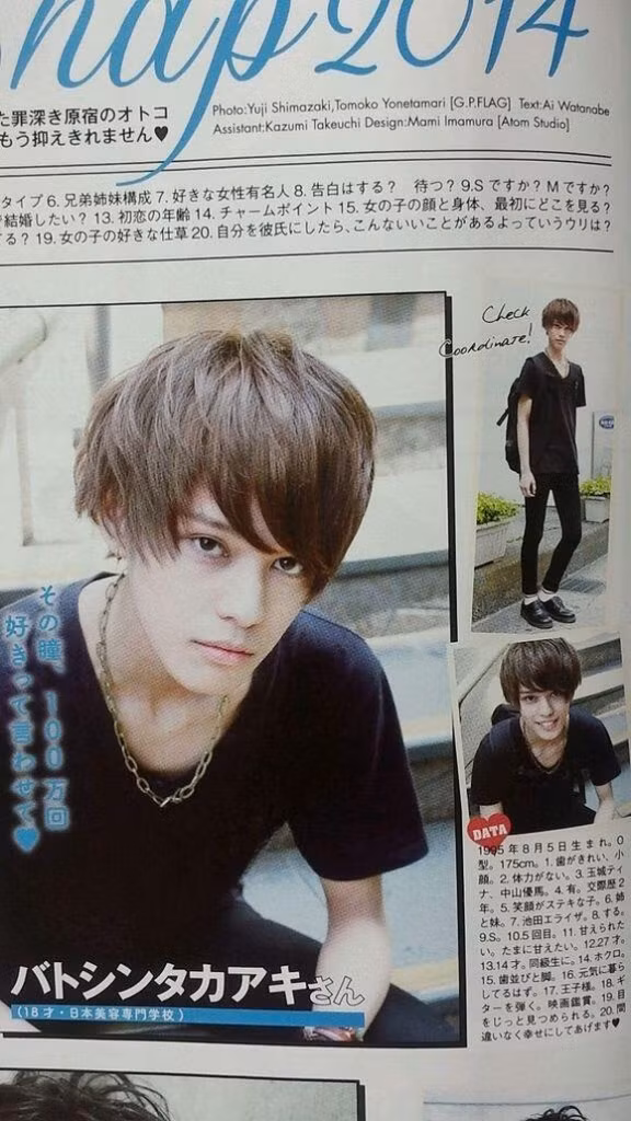 Sinh năm 1995 nhưng ngay từ những năm học cấp 3, Batusing Takaaki đã là người mẫu ưa thích của các tạp chí teen Nhật Bản.