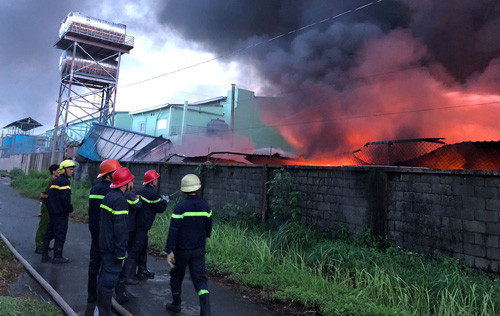 | Hàng trăm chiến sĩ Cảnh sát PCCC tham gia việc chữa cháy. |