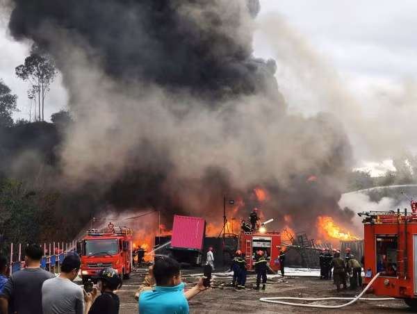 Một vụ cháy lớn kèm theo nhiều tiếng nổ liên tiếp đã xảy ra từ trưa 1/12 tại bãi tập kết hàng hóa thuộc thôn Thạch Nham Đông (xã Bà Nà, TP Đà Nẵng), khiến cả khu vực bao trùm trong khói đen dày đặc. Lực lượng Cảnh sát PCCC và CNCH Công an TP Đà Nẵng đã huy động hàng chục phương tiện, nhân lực để khống chế đám cháy trong nhiều giờ.