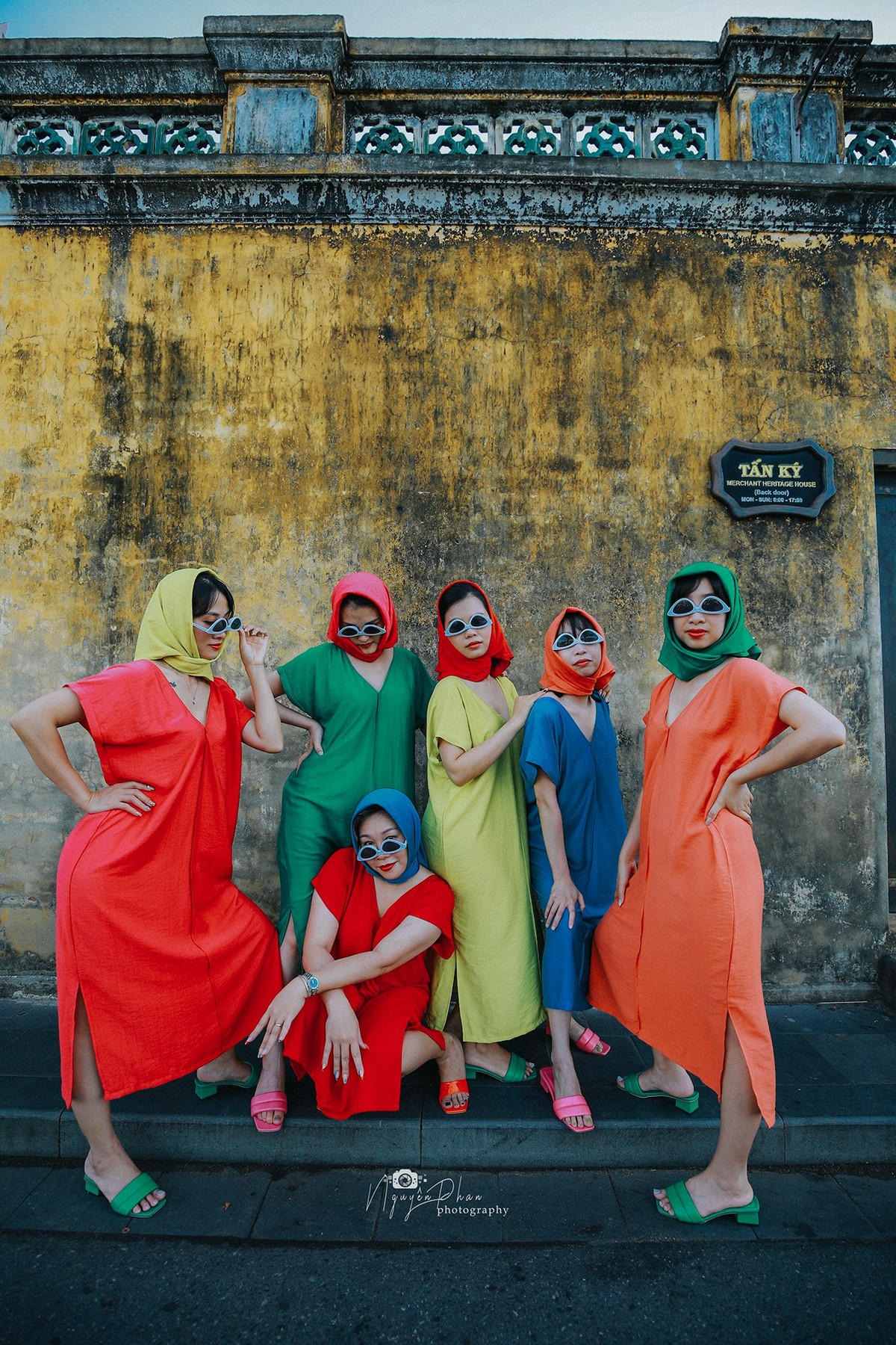 Trong chuyến du lịch Hội An của mình, nhóm 6 cô gái này đã đầu tư áo váy kĩ càng để cho ra bộ ảnh có “1-0-2”. Bộ ảnh gây ấn tượng mạnh với những chiếc váy sặc sỡ màu sắc để khi đứng cạnh nhau thì không khác gì một dải cầu vồng.