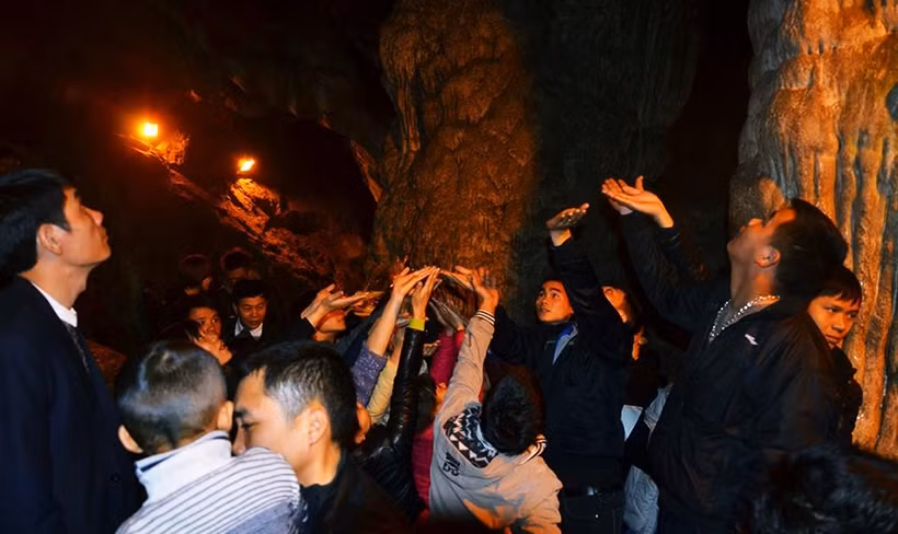 Du khách cùng nhau cầu nguyện trong động Hương Tích để cầu một năm sức khỏe tốt, tiền tài và gặp nhiều may mắn... Tuy nhiên, sẽ đẹp hơn nếu như một bộ phận du khách không có những hành động phản cảm.