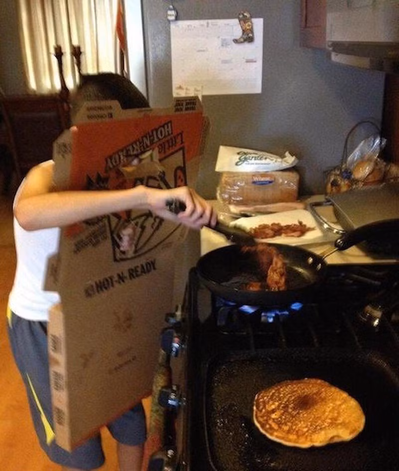 Để tránh bắn dầu mỡ vào người điều đó, có một cô nàng đã nghĩ ra tuyệt chiêu cực kỳ hữu hiệu sau đây.