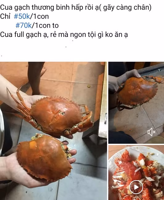 Những con cua bị mất 1 chiếc càng do quá trình vận chuyển được rao bán với giá rẻ.