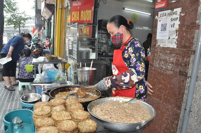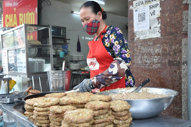 Quán chả rươi có 2 bếp với 2 người chuyên đứng rán vẫn không kịp bán.