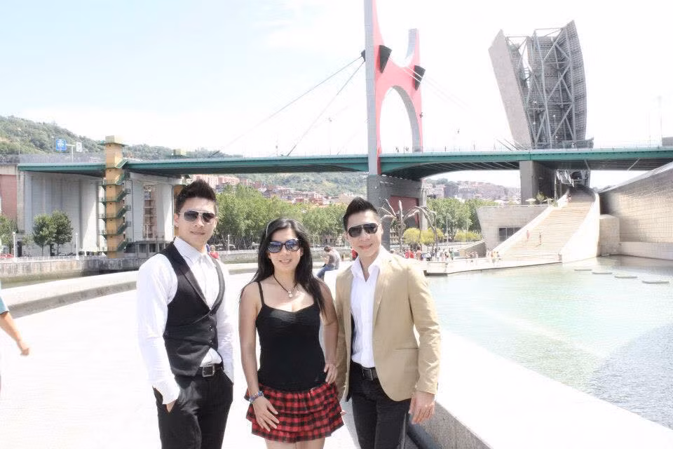 Quốc Cơ - Quốc Nghiệp vừa có phần trình diễn gây tiếng vang tại chung kết "Britain's Got Talent". Trước đó, hai anh em "hoàng tử xiếc" Việt Nam còn lập kỷ lục thế giới, giành vị trí á quân trong một show truyền hình của Đức. Tuy nhiên, ít ai biết rằng, chị gái của Quốc Cơ và Quốc Nghiệp cũng là một nghệ sĩ xiếc rất tài năng. Cô tên là Mỹ Phụng và hiện đang sinh sống tại Pháp. Trong ảnh, Quốc Cơ - Quốc Nghiệp chụp ảnh cùng với ba mẹ con Mỹ Phụng.