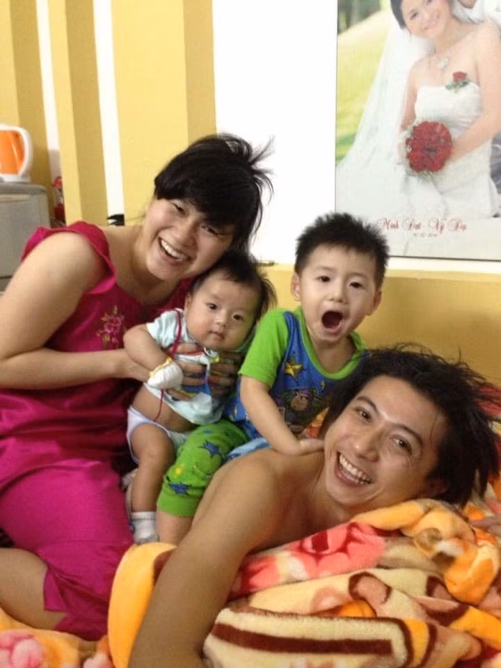 Sau khi tiết lộ "tuổi thơ dữ dội", Hứa Minh Đạt còn đăng ảnh "xấu lạ" của bà xã lúc ở nhà: đầu tóc bù xù, không make-up, cười thả ga bên chồng con. Có vẻ như với nam diễn viên, vợ là đẹp nhất, đẹp mọi lúc mọi nơi.