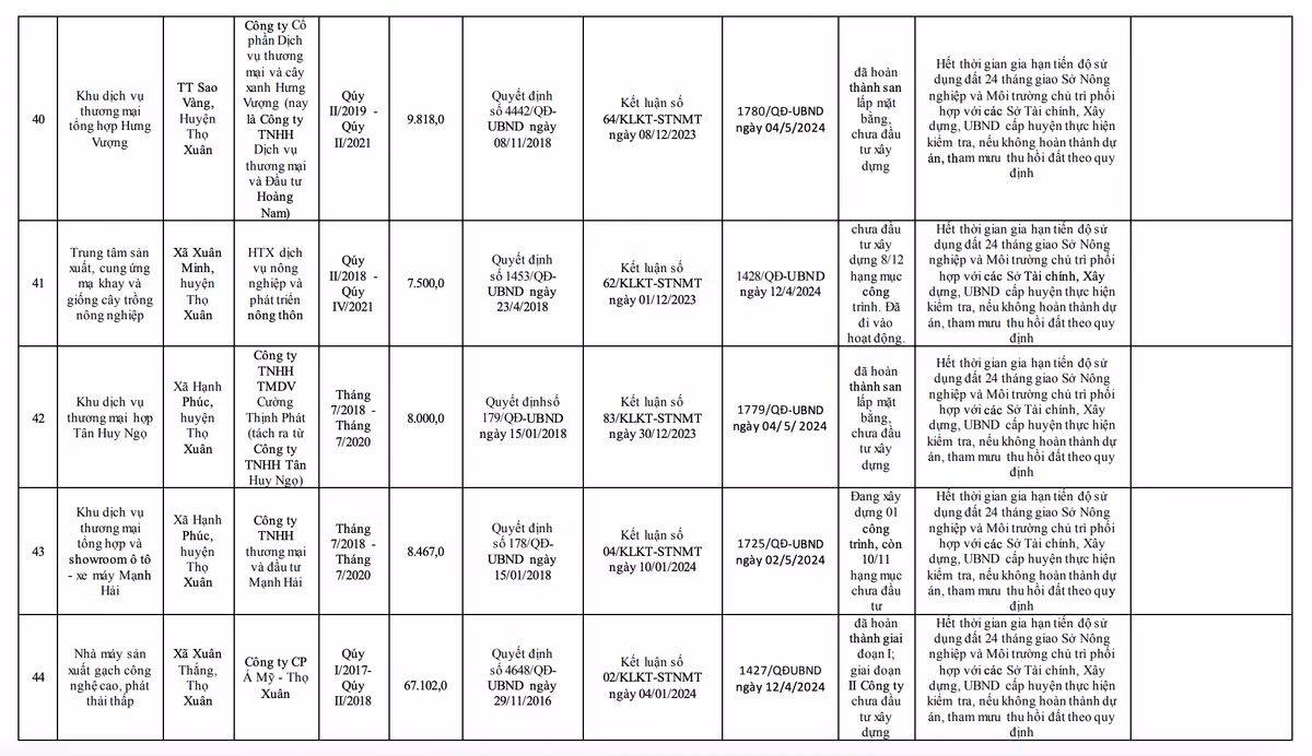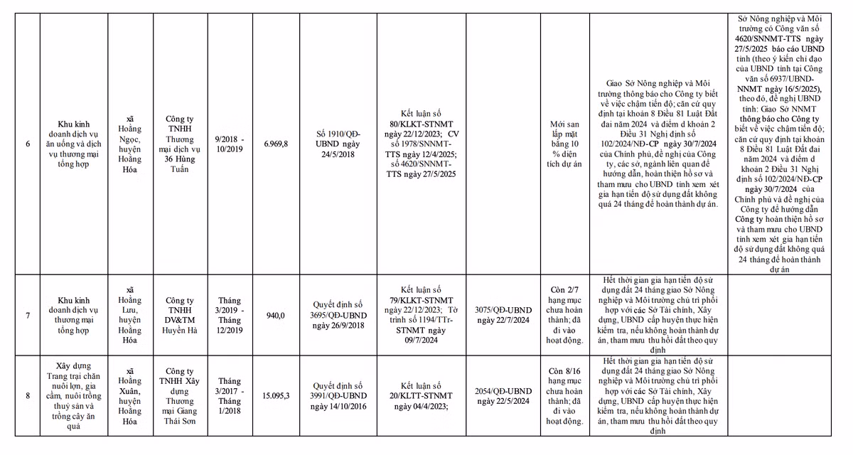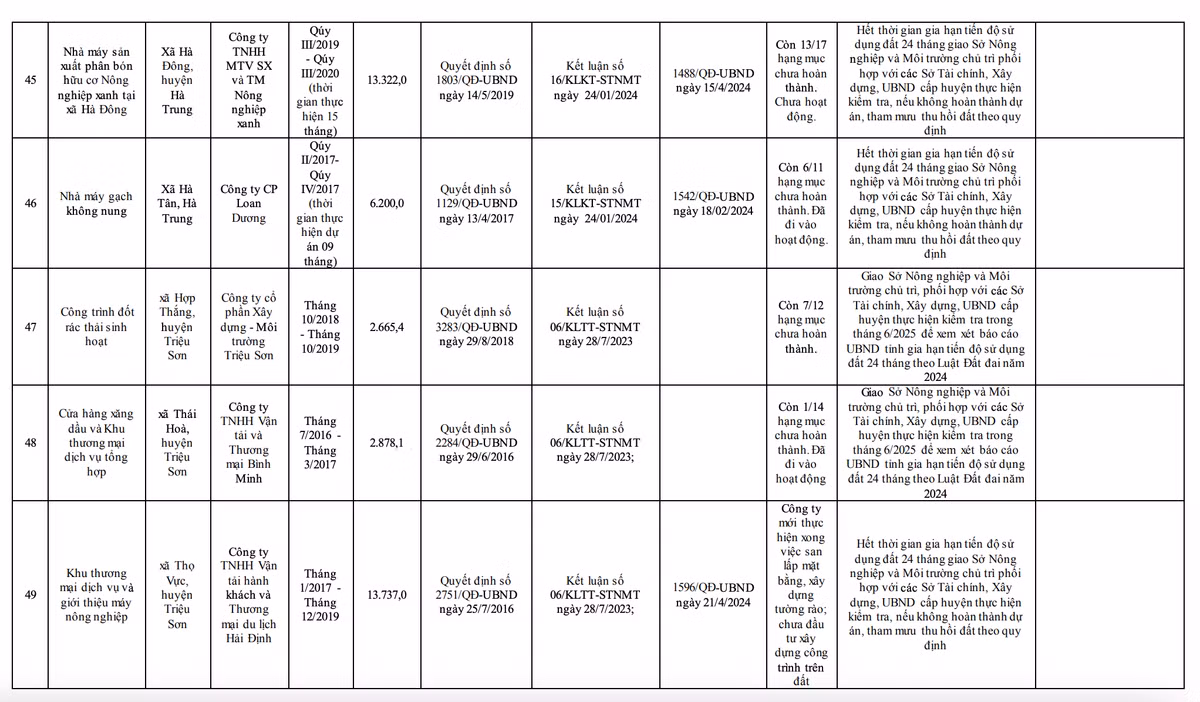 UBND tỉnh Thanh Hoá yêu cầu rà soát các dự án không đưa đất vào sử dụng hoặc chậm tiến độ sử dụng đất, vi phạm quy định của pháp luật đất đai trên địa bàn tỉnh.