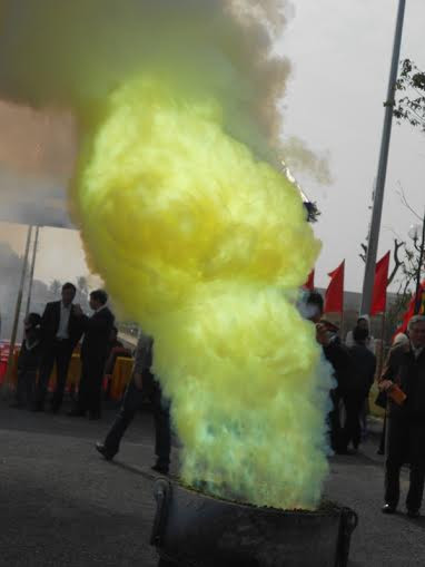 Hình ảnh rót đồng vào khuôn để đúc súng thần công...