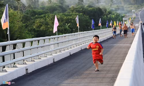 | Vào xế chiều, nhiều người dân quanh khu vực cầu tranh thủ dạo chơi, ngắm cảnh. |