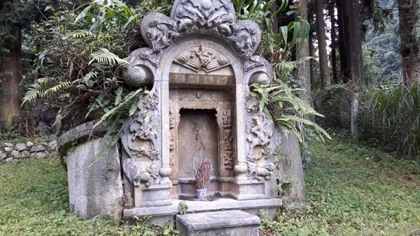 Cổng vào bằng đá khối kết hợp với gỗ chạm khắc rất tinh xảo.