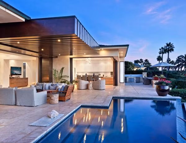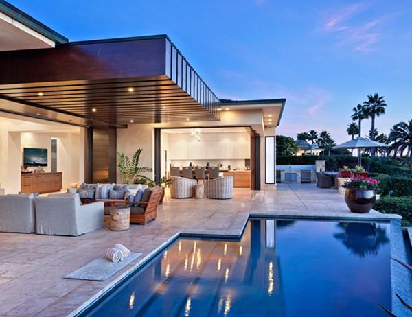 Ngôi nhà gồm sáu phòng ngủ hiện đại với những bức tường kính lớn để mở ra không gian ngoài trời. Ngôi nhà rộng hơn 700 mét vuông và được trang trí theo phong cách phóng khoáng của California.
