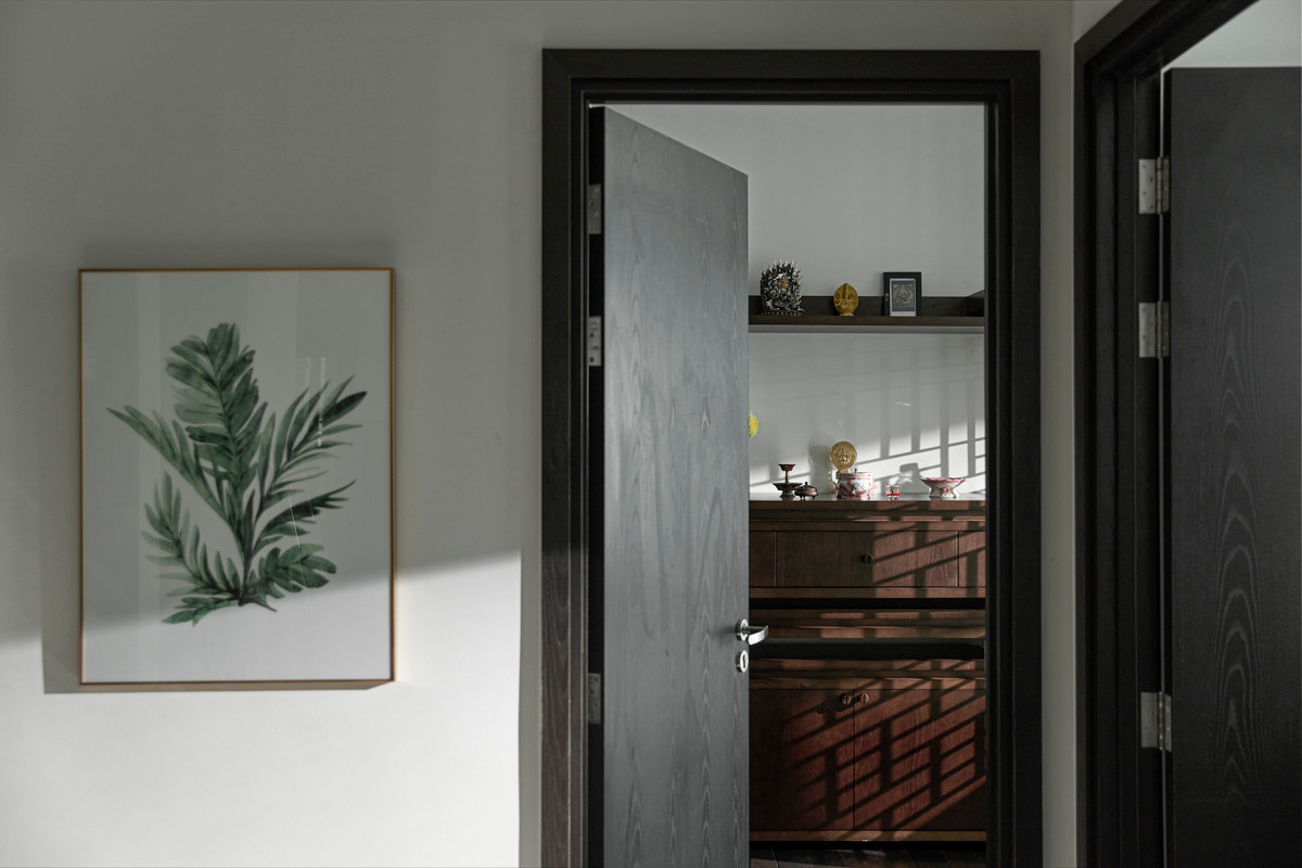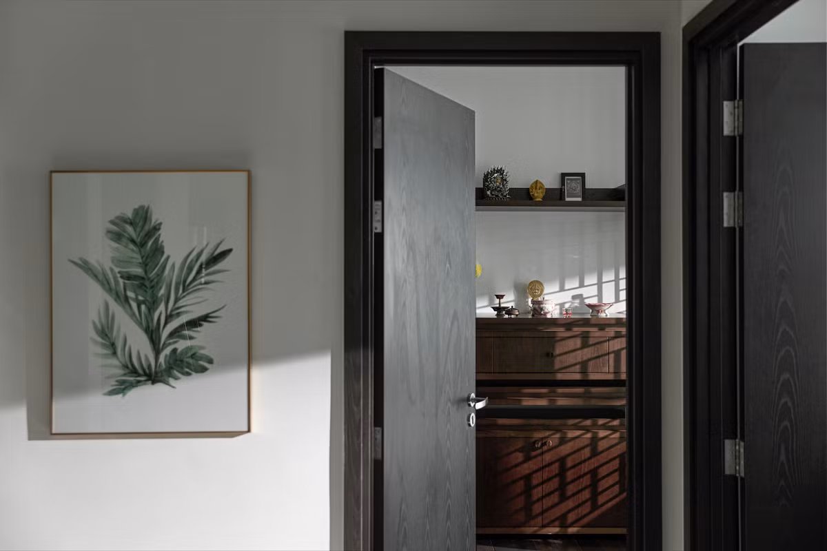 Bàn thờ được thiết kế tiêu chuẩn theo kích thước lỗ ban trong phong thuỷ, có vách ngăn chia. Không gian bàn làm việc có tầm nhìn hướng ra nội khu đẹp.