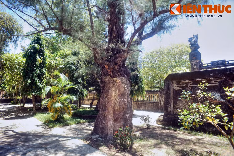 Cây phi lao này nằm cạnh tấm bình phong phía sau cổng chùa, cách chính điện khoảng 30m.
