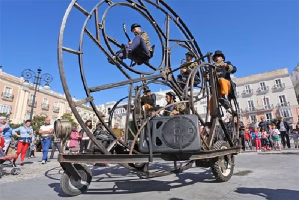 Bánh xe khổng lồ có thể chở 5 người, là thành viên của nhóm nhạc Catalan có tên Factoria Circular. Ba nhạc sĩ ngồi trong vòng tròn bánh xe lớn, bên trong 3 vòng tròn nhỏ, chơi các nhạc cụ gồm guitar, saxophone và trống. Hai người còn lại ngồi hai bên và là người đạp xe, đồng thời đảm nhiệm vai trò như các diễn viên.