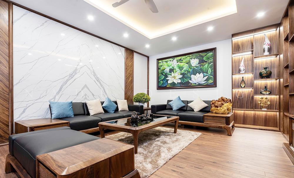 Phòng khách rộng rãi tại tầng 2 là nơi đón tiếp người thân, bạn bè đến chúc Tết.
