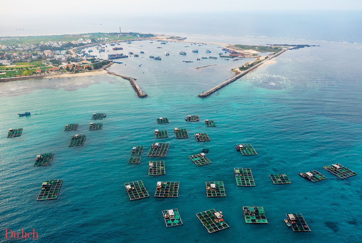 Ngư dân Lý Sơn nuôi trồng lồng bè thủy sản ở vùng biển gần bờ.