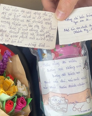 Một bức thư nhỏ của người dân được người dân gửi tặng tới chiến sĩ, phóng viên Nguyễn Tuấn Huy - Báo Quân đội Nhân dân.