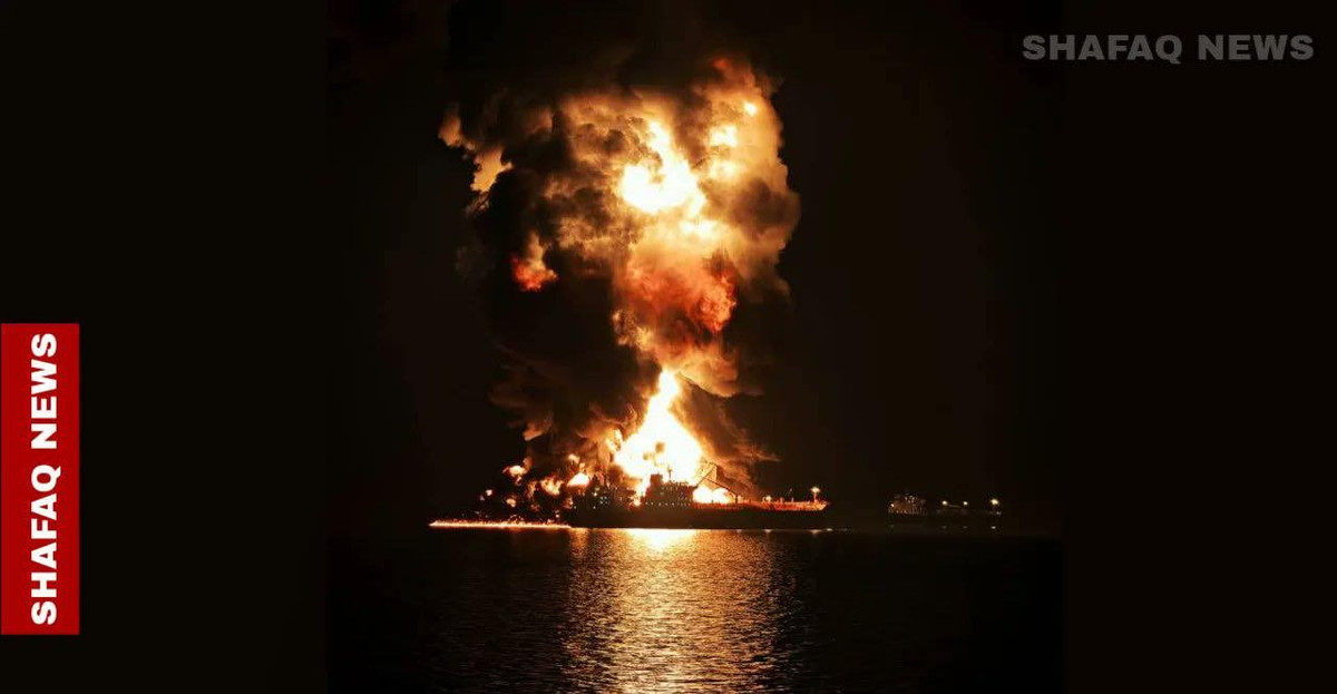 Tàu chở dầu trúng đạn pháo, bốc cháy trên biển Iraq.