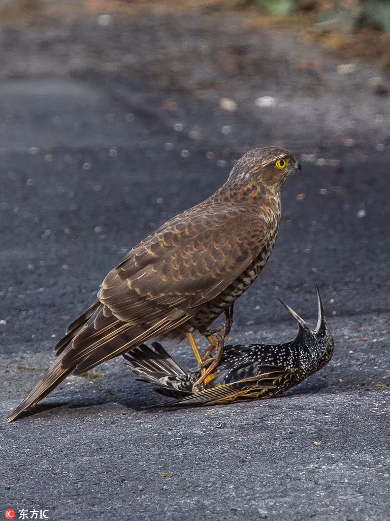 Mới nhìn, người xem sẽ nghĩ rằng con chim ưng ngỗng bị tấn công và con chồn mới là kẻ đi săn, tất cả là bởi biểu hiện của con chồn nâu vô cùng kịch liệt, trông nó giống như muốn xé xác đối thủ ngay lập tức.