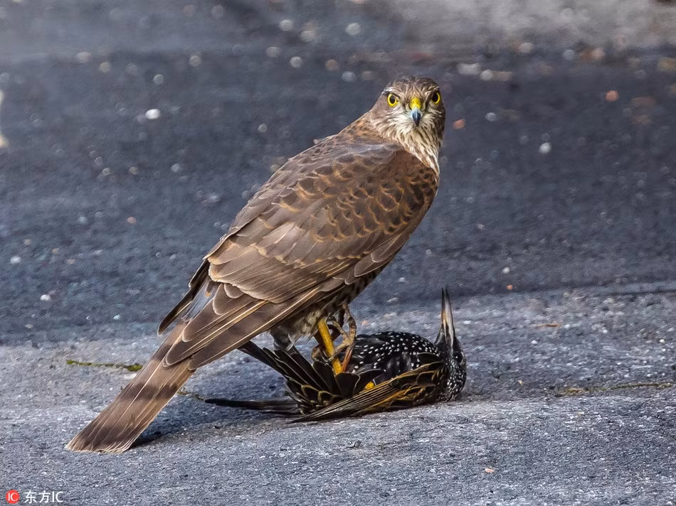 Theo quan sát, con chồn nâu đuổi theo con chim ưng ngỗng tấn công, nó thậm chí còn vươn mình, há rộng miệng, khoe hàm răng sắc nhọn để đe dọa kẻ thù. Cuộc tấn công được cho là bất ngờ và con chim ưng ngỗng không chạm được chân xuống đất để nghỉ ngơi.