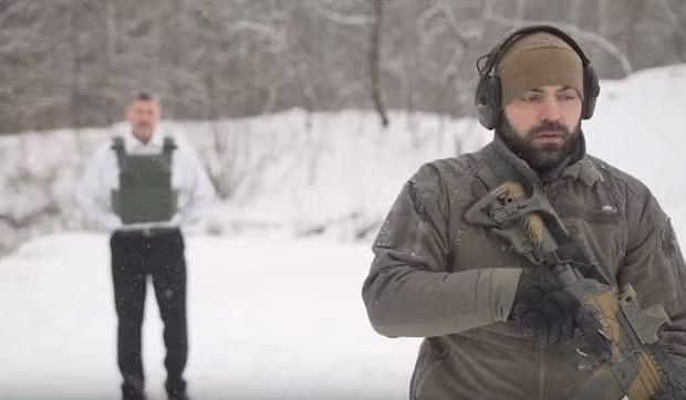 Theo đó, ông Vyacheslav Nalyvaiko mặc một chiếc áo chống đạn, đứng giữa trời tuyết và yêu cầu nhân viên cầm súng bắn thẳng vào mình.