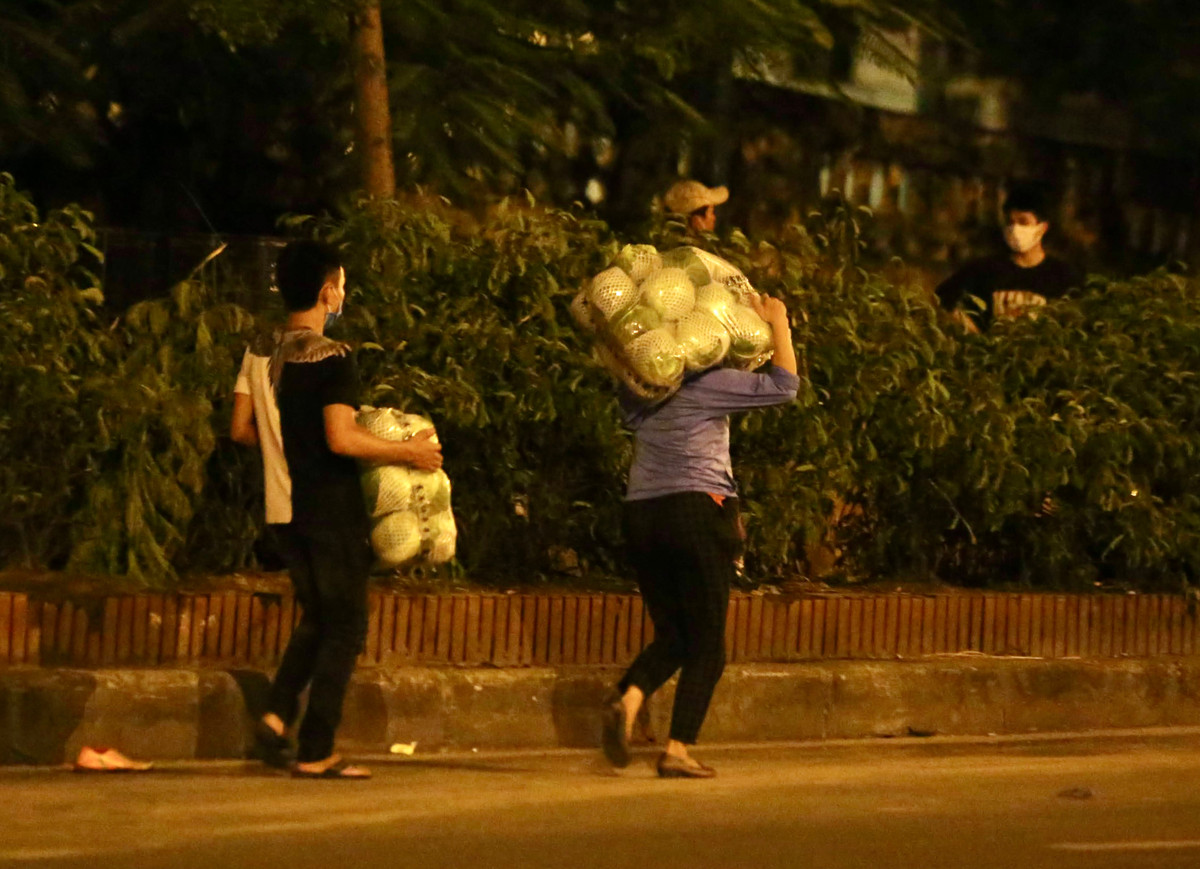 Chợ hoa quả Long Biên bị phong toả từ chiều ngày 3/8. Do không vào được chợ nên rạng sáng nay (4/8), các tiểu thương đã họp chợ ngay bên ngoài đường.