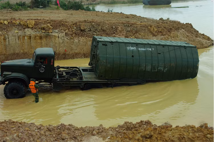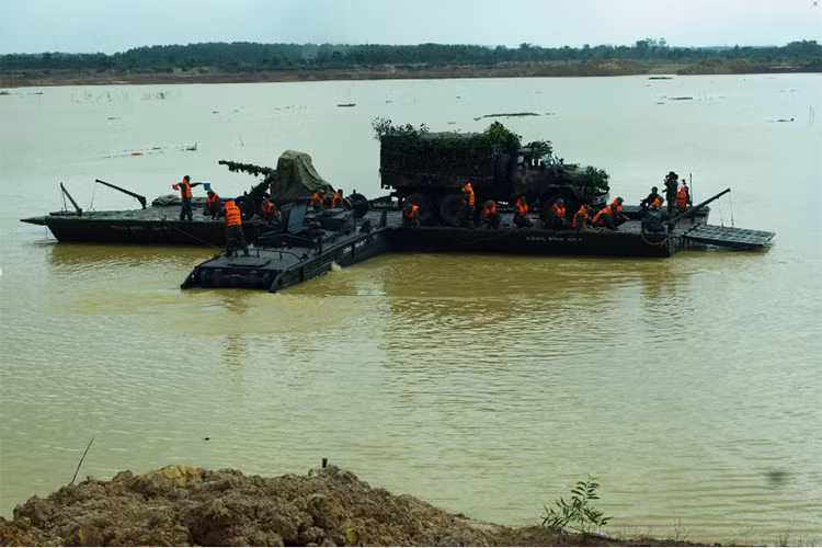 Đưa các phương tiện cùng binh khí kỹ thuật vượt vật cản nước.